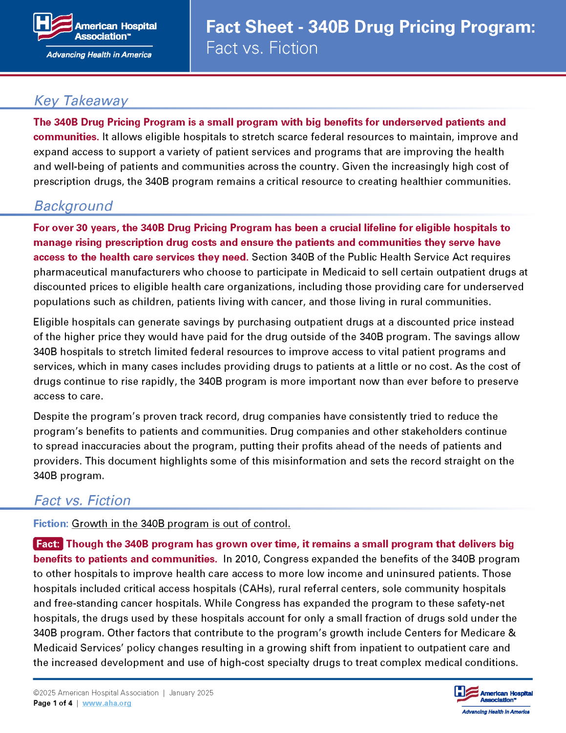 Fact Sheet: 340B Drug Pricing Program: Fact vs Fiction