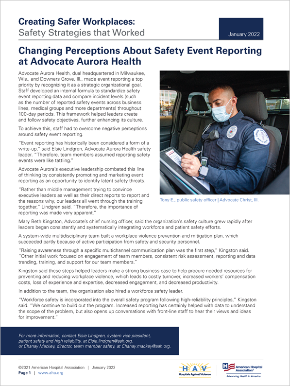 Case Study: Changing Perceptions About Safety Event Reporting at Advocate Aurora Health