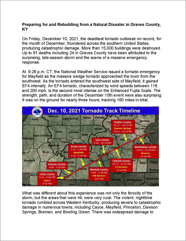 Case Study: Preparing for and Rebuilding from a Natural Disaster in Graves County, KY
