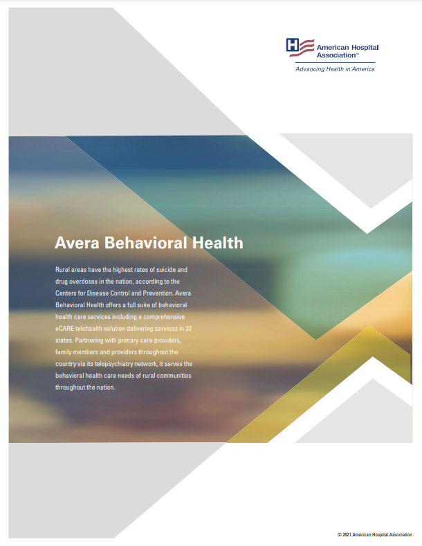 Rural areas have the highest rates of suicide and drug overdoses in the nation, according to the Centers for Disease Control and Prevention. Avera Behavioral Health offers a full suite of behavioral health care services including a comprehensive eCARE telehealth solution delivering services in 32 states. Partnering with primary care providers, family members and providers throughout the country via its telepsychiatry network, it serves the behavioral health care needs of rural communities throughout the nation.