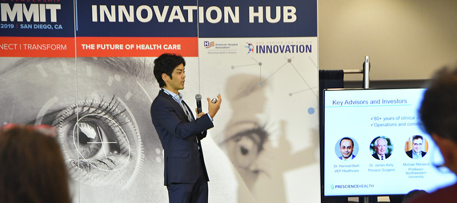Six early-stage companies presented their ideas Thursday at the inaugural startup competition to find creative solutions to meet the needs of hospitals and health systems nationwide. Prescience Health, which provides predictive nurse staffing for hospitals, won the competition. View a video of their pitch during the startup.