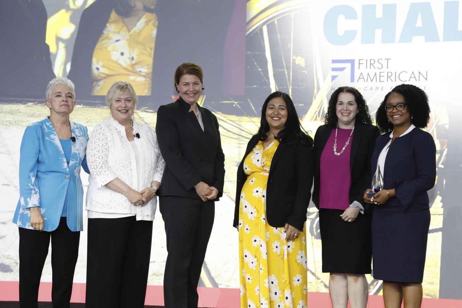 Pictured, from left to right: Melinda Estes, president and CEO of Saint Luke's Health System and chair-elect of AHA's Board of Trustees; AHA Executive Vice President and Chief Operating Officer Maryjane Wurth; and the first place winners, New York Presbyterian.
