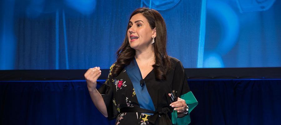 Pictured: Shabnam Mogharabi, CEO and executive producer at SoulPancake, an award-winning media company, opened the meeting with insight into cutting through the negative online and social media messages to connect with people by celebrating personal and profession purpose.