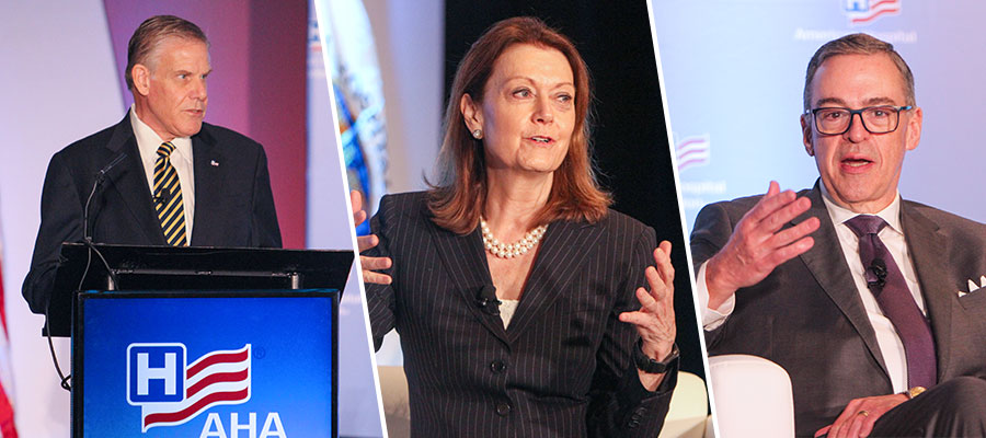 Pollack also moderated a fireside chat with AHA Board of Trustees Chair John Haupert, president and chief executive officer of Grady Health System, and Chair-elect Joanne Conroy, M.D., chief executive officer and president of Dartmouth Health. Their conversation examined the most persistent challenges faced by rural hospitals, firsthand examples of innovative rural health care redesign and how Grady Health System and Dartmouth Health have partnered with rural hospitals.