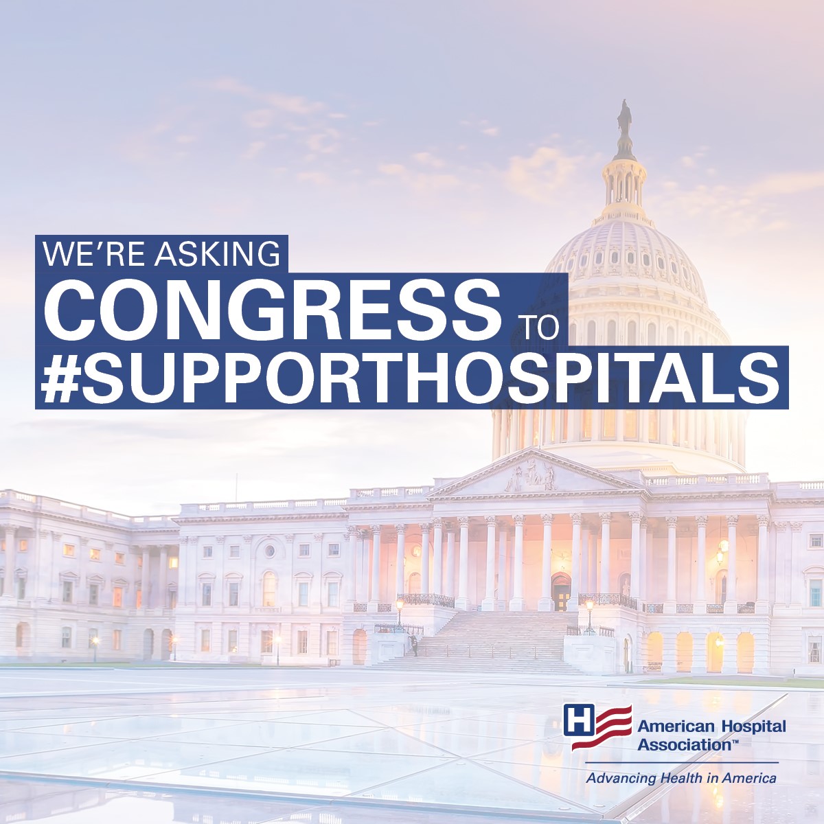 To that end, we have crafted messages and graphics for you to use across your organization’s social media platforms. Remember to tag your members of Congress and @AHAadvocacy and use #SupportHospitals in all your messages.